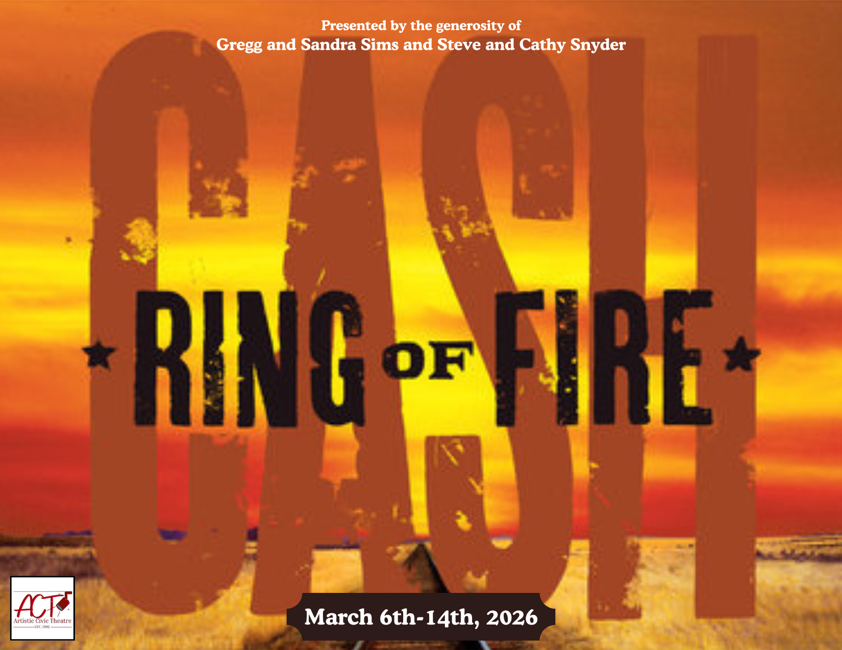 ACT is proud to present "Ring of Fire: The Johnny Cash Musical" for seven performances on the Mashburn Stage in The Martin Theater from Friday, March 6th to Saturday, March 14th!